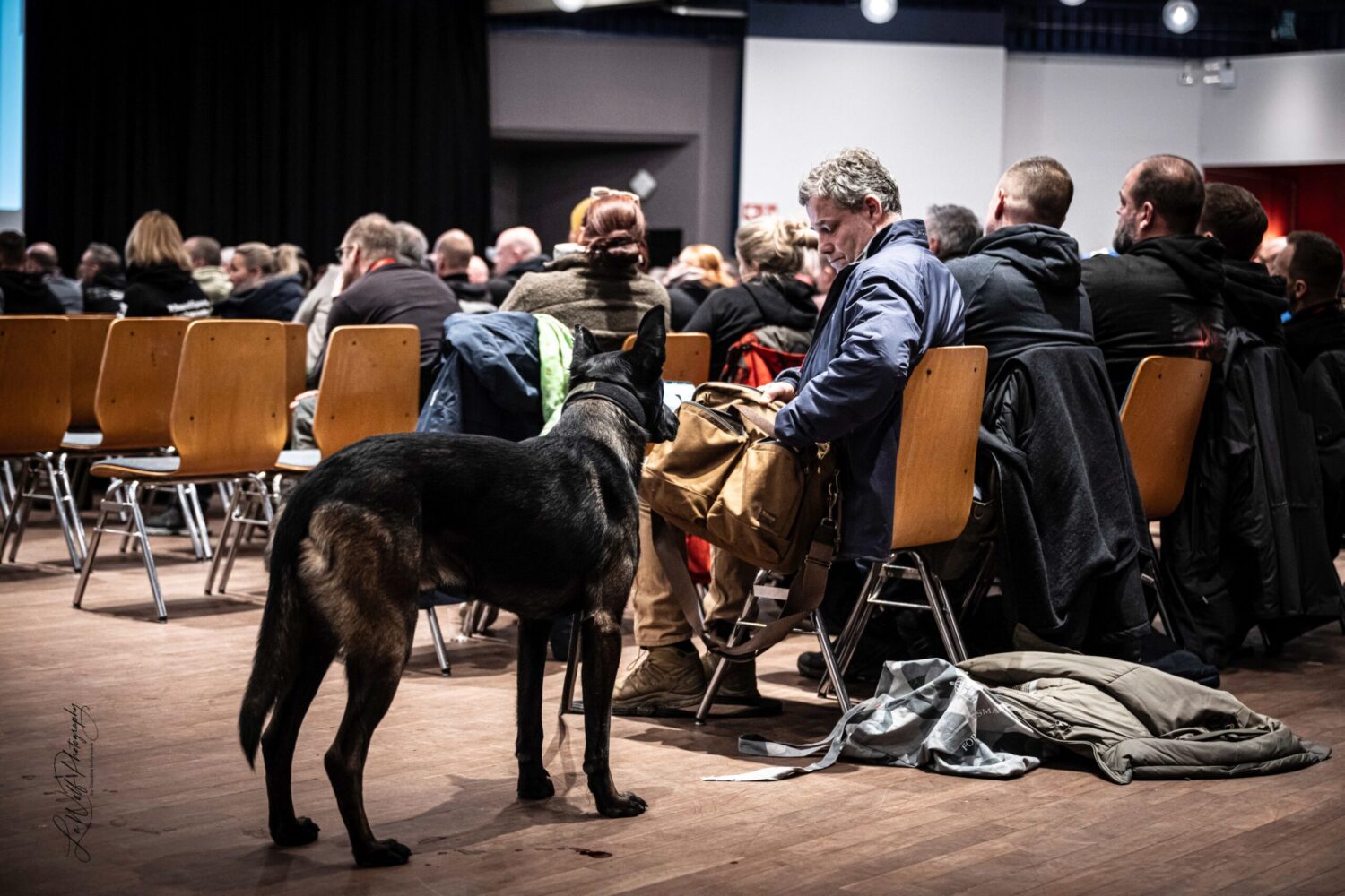 Zahlreiche Vertreter aus diensthundeführenden Behörden nutzten die Gelegenheit, sich zu vernetzen. Auch international war Ennepetal 2.0 stark aufgestellt: Das österreichische Bundesheer war vertreten, der K9-Verantwortliche der Schweizer Armee war angereist, genau so wie erfahrene Züchter, so z.B. der FMBB-Präsident Johan Weckhuyzen und Knut Fuchs.